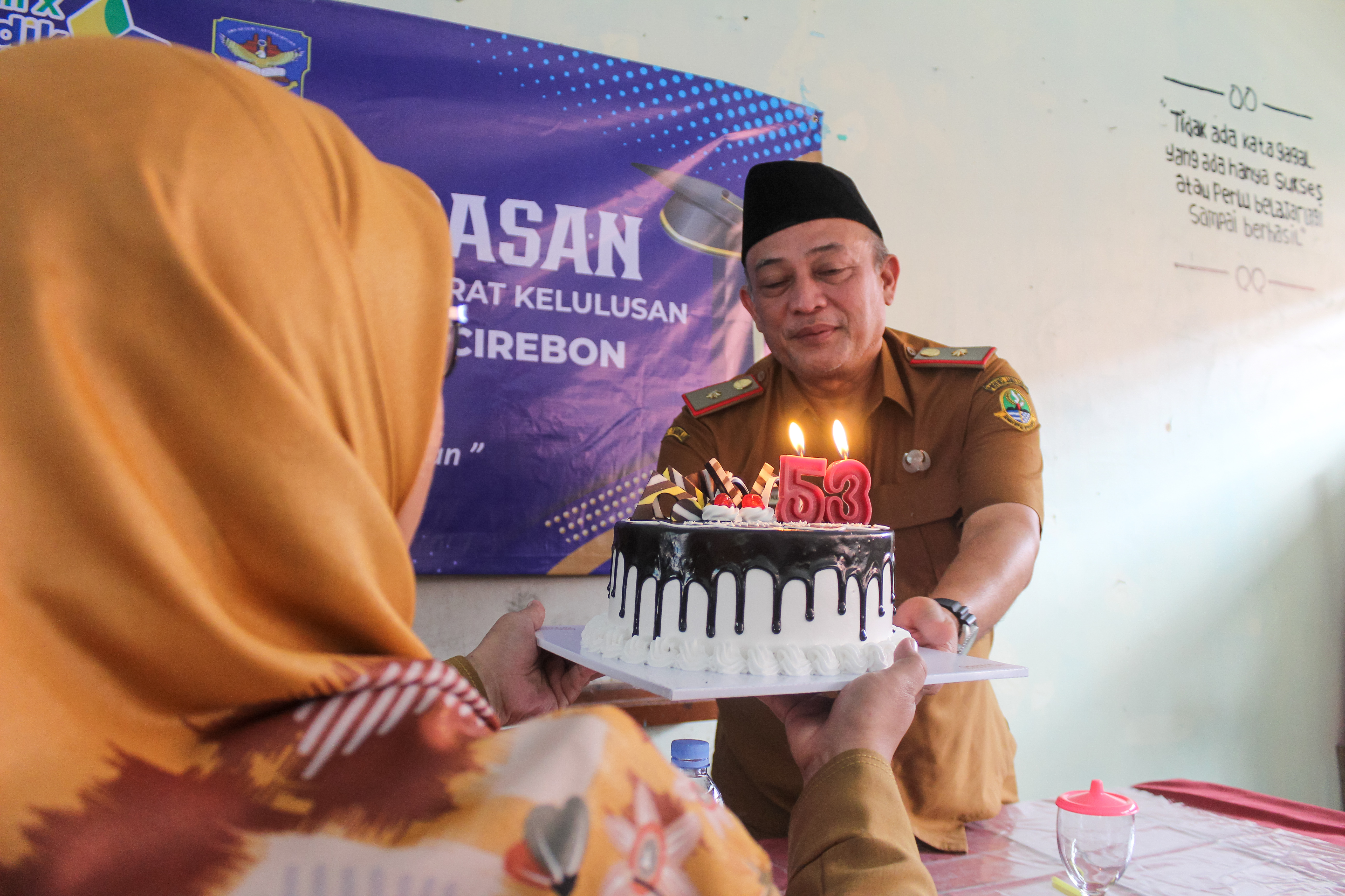 Kejutan ini diberikan kepada Bapak Kepala Sekolah yang sedang berulang tahun yang ke-53, beliau sangat terharu sekaligus bahagia, ulang tahunnya diperingati pada acara Perpisahan & Pelepasan tahun ini.