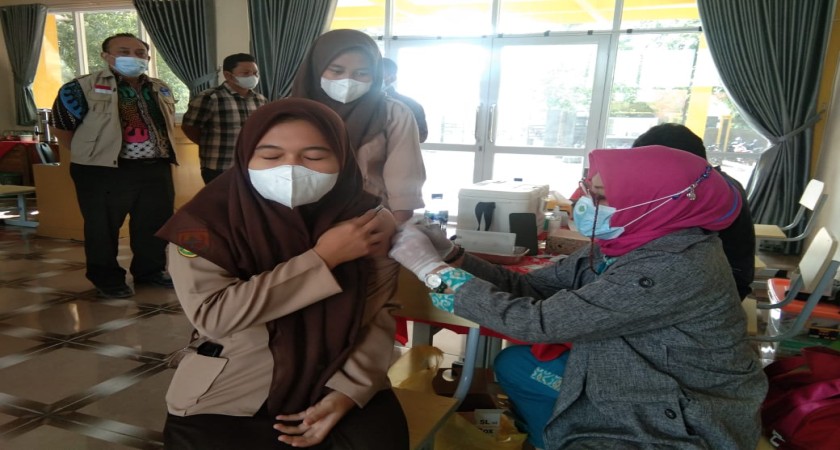 Dengan adanya program vaksinasi ini diharapkan dapat memutus mata rantai penyebaran Covid-19 dan pelaksanaan Pembelajaran Tatap Muka bisa berjalan dengan normal dan aman (Humas/AW)